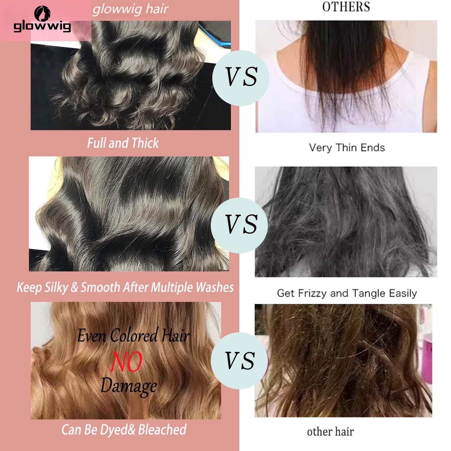Body Wave Human Hair Bundles Advantage: Double Machine Weft, Very Soft and Silky, Full Density, Thick Ends, Soft Weave, Bouncy and Shiny Hair Weft with High Elasticity, One Direction Cuticle With No Split Ends,Tangle-free, Minimal Shedding, No Chemical Treatment, No Smelling, No Animal Hair Mixed, No Lices.